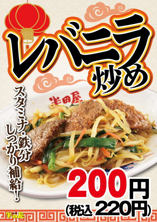 ■「レバニラ炒め」 200円(税込220円)