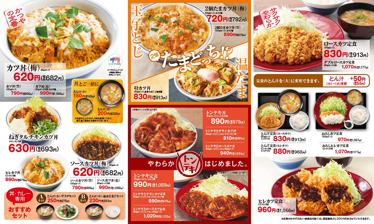 加工工場から約4週間熟成されたチルド状態で納品される、かつやこだわりの豚ロースを今回は天ぷらに仕立てました。豚ロース天と食べ応えのあるチキンカツ2枚を玉子でとじ、丼へ豪快に合い盛りにしました。味の決め手は、コク深く甘味のある特製「黒味噌ダレ」です。たっぷりと回しかけられた濃厚なタレが、ジューシーな肉の旨みと絡みあい、思わずご飯をかきこみたくなる味わいに仕上げました。